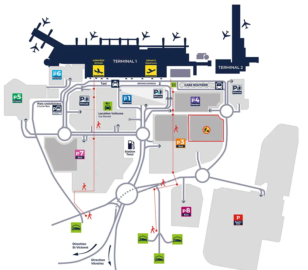 - Guichet aéroport situé entre le terminal 1 et le terminal 2